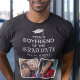 Mostre seu apoio no dia/festa de graduação de namoradas com esta t-shirt personalizada de manutenção. Design apresenta 2 fotografias da sua escolha e o texto "Namorado orgulhoso do Formando". Seu nome, local de estudo e ano de aula.