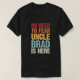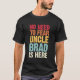 Camisa de tio personalizada com um design divertido e divertido com um personagem de super-herói chamado Tio Brad, perfeito para apresentar um tio especial à família.
