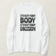 Design de texto com a citação "Não é o seu corpo Não é a sua decisão". Defenda a dignidade humana, a igualdade de gênero, os direitos das mulheres e a autodeterminação.