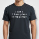 Camiseta Não posso. Tenho planos na minha garagem.