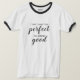 Inscrição preta "Não preciso ser perfeito, já sou bom" num fundo branco.
