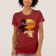 Gráfico surfando de um surfista e um nascer do sol sobre a água.