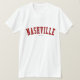 Verifique para fora este t-shirt de Nashville! É você de Nashville, Tennessee? Você tem um amigo ou um membro da família que amem Nashville, Tennessee? Em caso afirmativo, este t-shirt da "bandeira" é exatamente o presente que você está procurando! As características de design "Nashville" na rotulação vermelha arqueada na pia batismal clássica da faculdade.