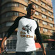 Camiseta Básica, Mangas Raglan 3/4, Branco/Preto, Adulto M