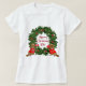Cartões de natal festivos do Canadá e canadenses. O ouro bonito e a borda vermelha têm cantos de rolagem holly. A neve cobria o fundo com coroa oca e bandeira canadense acenando em frente a ávora vermelha. O texto diz: Feliz Natal!