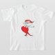 Lutando para encontrar um design de feriado unisexo que possa ajustado toda a família? Gostaria que houvesse algumas opções de roupas de Natal que focassem nas preferencialmentes de alegria do que nos presentes? Esta camiseta de Natal de Papai Noel dançante faz um presente de excelente para meninas, meninos, adultos e crianças. Comprar set para a família inteira para o seu cartão de Natal e entupindo o seu caminho durante o feriado. Ilustração vermelha e branca sobre fundo branco. Arte original de Kelly Rae Bahr.