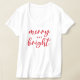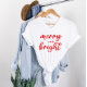 Uma festa de Natal festiva para mulheres com tipografia moderna de escrita em minúsculas com "Feliz e Brilho" dizendo. O texto vermelho e o estilo de camisa branca podem ser modificados.