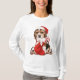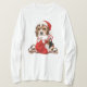 Filhote de cachorro bonito do lebreiro com meia do Natal, chapéu do papai noel, e ornements do Natal, pintados pelo artista Maryline Cazenave.