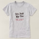 O design de texto que diz "o é apenas meu T - TRATE ELE!". Uma linha horizontal cinzenta divide as duas peças, e são ajustadas igualmente em pias batismais diferentes e em cores para amaciar acima.