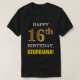 Esta simples design de camisa de cor preta com tema de aniversário apresenta um desejo de aniversário quente como "FELIZ 16º ANIVERSÁRIO, GEORGIANA!" na frente, em texto ousado. O número de aniversário tem uma aparência falsa e imitada de cor dourada. O nome na frente pode ser personalizado. Uma camisa de aniversário como esta poderia ser vestida a uma festa de aniversário para alguém que comemora seu décimo sexto aniversário. [~Z0000318]