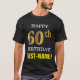 Esta simples design de camisa preta, tema de aniversário, apresenta um desejo de aniversário quente como "FELIZ 60º ANIVERSÁRIO, PRIMEIRO NOME!" na frente, em texto ousado. O número de aniversário tem uma aparência falsa e imitada de cor dourada. O nome na frente pode ser personalizado. Uma camisa de aniversário como esta pode ser divertida de vestir numa festa de aniversário que está sendo realizada para alguém que está comemorando seu sexagésimo aniversário. [~Z0000318]