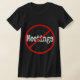 Nenhum slogan sarcástico do humor do escritório das reuniões em letras distorcidas com um círculo vermelho e uma linha. Não obtenha prendido em uma reunião no trabalho, mostram-lhes como você sente realmente com este provérbio engraçado.