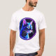 O traçado elegante do gato, trazido à vida com tons vibrantes de azul e roxo, irradia uma vibe moderna e futurista. O fundo inspirado no cósmico, pontilhado com estrelas sutis, adiciona uma misteriosa atmosfera galáctica. Perfeito para amantes de gatos e fãs de estética neonatal