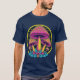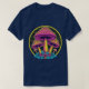 Este design vibrante apresenta um trio de cogumelos chamativos com bonés rosa brilhantes adornados com manchas amarelas. Os caules são um amarelo radiante, e as intrincadas guelras são destacadas em um roxo profundo, adicionando profundidade e detalhes aos cogumelos. Na base, folhas e flores azuis-esverdeadas acentuam o tema natural, mas fantástico. Toda a composição é enquadrada por um círculo amarelo arrojado com linhas e pontos geométricos, melhorando a vibração psicodélica e retrorreflectora do design. As cores vivas criam um contraste impressionante, fazer o pop design e garante que ele pegue o olho. Esta camiseta é perfeita para fãs de arte psicodélica, temas retrorados e gráficos ousados e únicos. Ideal para festivais de música, excursões casuais ou fazer uma declaração de moda vibrante, esta camiseta irá sem dúvida atrair atenção e admiração.