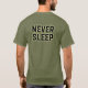 A vibrant retro-style illustration featuring a black video game controller silhouette against a classic 80s striped sunset. The bold text "NEVER SLEEP" perfectly captures the dedicated hardcore gamer lifestyle and late-night gaming sessions