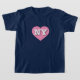 Esta t-shirt tem um coração cor-de-rosa vibrante contendo as letras maiúsculas, brancas, em negrito, NY, a abreviação oficial de Nova Iorque, o Estado do império.