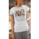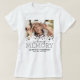 Camiseta personalizada de tributo memorial com uma foto tesourada do seu ente querido, um simples design de coração branco, o ditado "na memória amorosa", seu nome e datas.