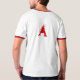 O t-shirt com escarlate de A sobre suporta e cita na parte dianteira, "primeiro no deus criado do dia homem"