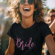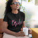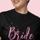 Este design apresenta noiva casamento rosa caligrafia script, chique moderno elegante simples, um mínimo minimalista pontos divertidos, presente para chá de lingerie despedida de solteira, ótimo para evento de celebração de fim de semana de despedida de solteira, para ela feminino senhoras meninas, tipografia fofo trendy elegante, minimal clássico limpo simplista, simples gráfico novidade lembrança, para a camisa da noiva