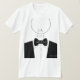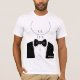 Camisa de noivo preta e branca personalizável com monograma e retrato abstrato de um noivo de smoking com as palavras "o noivo". Você pode modificar e remover palavras para adicionar os nomes ou iniciais dos padrinhos para criar designs combinando para os padrinhos. Este design de camisa funciona muito bem para fotos de noivado casuais ou uma despedida de solteiro. Design por ©Ms_Jade.