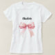 Para uma camiseta leve. Decorada com um laço rosa. Personalize e adicione seu nome. Texto preto.