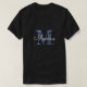 Bebê personalizado monogramado, tee do bebê para personalizar. A mão esboçou o nome inicial e do script em azul escuro e em letras burgundy em uma mesa azul. Adicione o nome do seu bebê e a inicial. Trabalha para uma garota também!