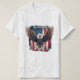 Mostre seu orgulho americano com esta design ousada e patriótica apresentando uma águia careca voando contra um pano de fundo da bandeira americana.