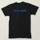 Camiseta gráfica com a linha do horizonte Nova Iorque (NYC). A linha do horizonte da Nova Iorque está na frente desta camiseta. Cores preto e azul. Personalize o verso com seu nome ou texto desejado. Camiseta excelente para homens, mulheres e crianças. Use a modelo para criar sua própria camiseta gráfica de Nova York.