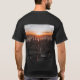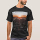 "City of Dreams" Design de New York T-Shirt: Esta design de camiseta captura a essência da Nova Iorque, combinando a sua linha de horizonte icônica com um toque de arte urbana. O foco central é a silhueta torrencial de marcos famosos como o Empire State Building, a Estátua da Liberdade, e a Ponte do Brooklyn, todos esboçados com linhas ousadas e agudas. O horizonte é posicionado contra um pano de fundo dinâmico das luzes noturnas da cidade, com um gradiente de azuis e roxas profundos representando o céu crepúsculo.