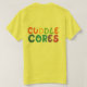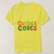 O design "Cuddle Cores" apresenta uma fonte colorida e lúcida com as palavras "Cuddle Cores" em um estilo caprichoso. O fundo é branco, e as letras são uma mistura de cores brilhantes, criando um olhar divertido e convidativo.