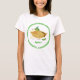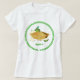 O t-shirt com um sorriso, quase-inteiro, verde, ilustração das mulheres dos desenhos animados da torta de maçã. Os números para o Pi são visíveis para diversos lugares decimais. Este de "design do π Apple" é significado reunir o divertimento do cozinhar e dos cálculos. É divertimento e é nerdy. Duas coisas que se emparelham maravilhosamente junto.