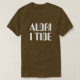 Um texto norueguês: aldrii tide, que pode ser traduzido para: nunca a tempo. Esta camiseta marrom pode ser personalizada para lhe dar uma aparência única. Você pode personalizar o tipo de fonte, a cor, o tamanho, alterar o texto, remover e adicionar texto, adicionar foto e muito mais.