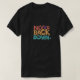 Um design de camiseta vibrante apresenta a frase "Nunca recuar" em letras negrito e multicoloridas. As cores são dispostas em um efeito gradiente, criando um olhar dinâmico e atraente. O design é colocado sobre um fundo comum, permitindo que a frase fique no centro do palco.