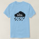 Chuva de uma nuvem de chuva escura e a palavra tailandesa ฝ น dentro a nuvem. Esta palavra pode traduzir-se em chuva. Você pode personalizar esta t-shirt azul para lhe dar uma aparência única.