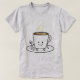 Caneca de café de Latte que come alguns cubos do açúcar. Assento pacientemente em uma placa que snacking afastado. Obrigado olhando o design feliz dos alimentos!