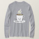 Caneca de café de Latte que come alguns cubos do açúcar. Assento pacientemente em uma placa que snacking afastado. Obrigado olhando o design feliz dos alimentos!