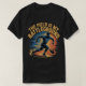 Esta t-shirt preta apresenta o texto "O CAMPO É A MINHA BATTLEGROUND" numa fonte estilizada amarela que se curva em torno de um gráfico central. O gráfico retrata um jogador de futebol, que parece ser um homem de pele clara com cabelo escuro, correndo com uma bola de futebol. O fundo tem explosões dinâmicas de azul e laranja, sugerindo energia e competição no campo.