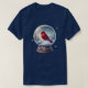 Um cardeal vermelho vibrante atingiu o globo de neve ornamentado e dentro, cercado por uma paisagem de inverno gelada com árvores de neve e flocos de neve delicados.