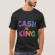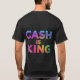 Esta camiseta flamejante apresenta a frase ousada "Cash is King" em uma paleta vibrante e multicolorido. O design lúdico e enérgico é perfeito para qualquer um que aprecie um toque de humor e uma peça de declaração.