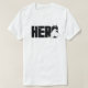 Tipografia gráfica da palavra "Herói", com o esboço de Batman no final com um enxame de morcegos.