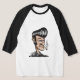 Camiseta Básica, Mangas Raglan 3/4, Branco/Preto, Adulto M