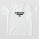Projetado para roupa de luz, este mundo não gira ao seu redor, design tem uma reviravolta adicional quando o usuário se vira.... A frente da camisa diz, "Eu verifiquei que o mundo não gira ao seu redor." A parte de trás diz: "Gira à minha volta."