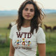 Camiseta What the Duck. © Roupas e Suéteres na Zazzle. Esta camiseta tem um trio engraçado e fofo de patos ocidentais vestidos como cowboys com pistolas. e as palavras What the Duck (WTD) nela.