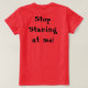 Eu escolhi escrever "o que você está olhando?" e "pare de me olhar" nesta camiseta porque ela parece legal e traz humor para a coisa toda.