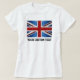 A bandeira do Reino Unido estimula o texto personalizado T-Shirt. A bandeira do Reino Unido, de cor cinzenta, vermelha, branca e azul, brilha. Usamos a foto de faíscas e não de reluzentes. Sem brilho confuso ao toque!
