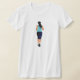 Este design é de um corredor da pessoa. A mulher está funcionando em calças justas pretas e em uma parte superior azul. Este design do corredor da pessoa olha grande neste t-shirt das mulheres