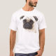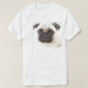 Feche acima de uma cara do cão do pug em uma variedade de artigos do presente para amantes do pug.