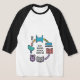 Camiseta Básica, Mangas Raglan 3/4, Branco/Preto, Adulto M