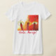 A vida de três pimentões-do-sul vestindo sombrores feitos de limão e tangerina contra o fundo texturizado do dia mexicano quente e ensolarado. Camiseta. Tema de amizade engraçado. Você pode mudar o modelo Hola, Amigo! Moda feminina.