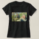Ilustração religiosa vintage apresentando a oficina de José com a Virgem Maria e o menino Jesus Cristo alimentando um cordeiro.